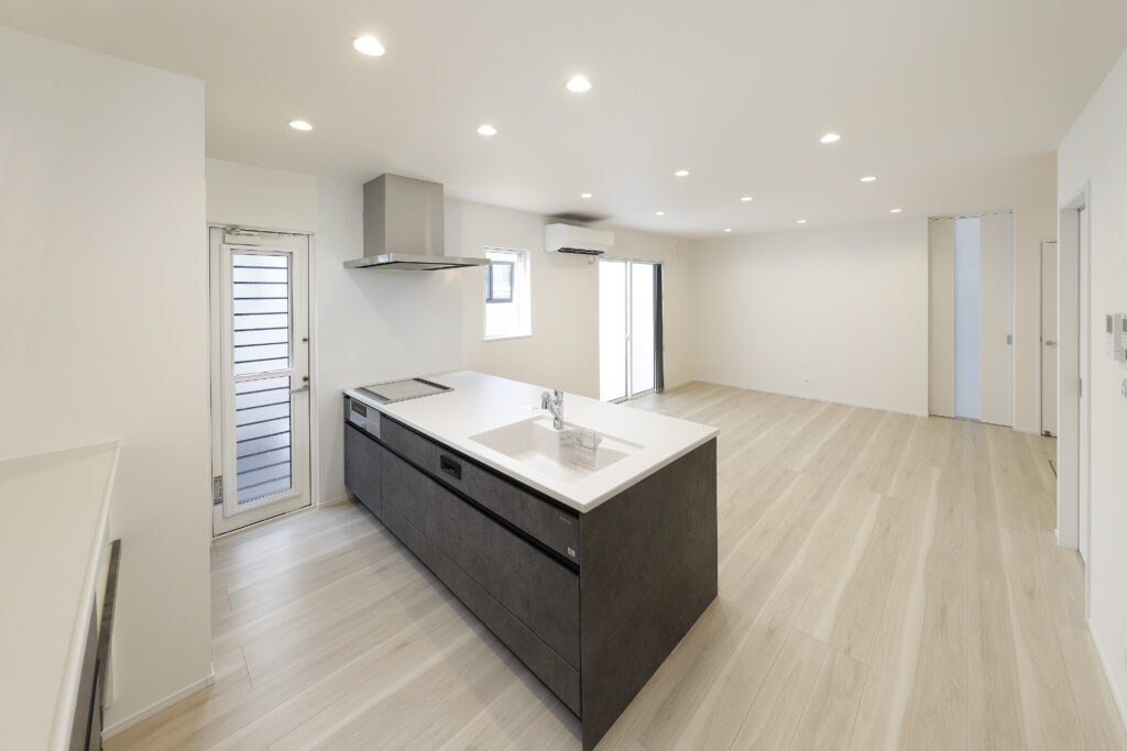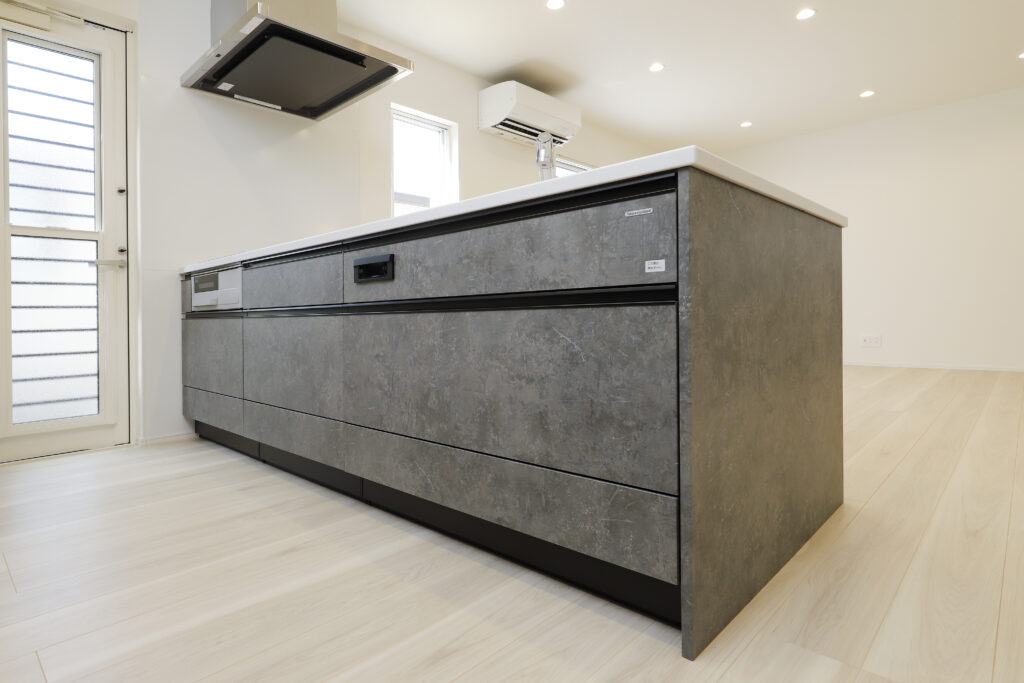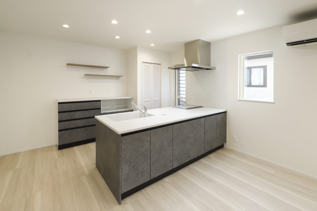 奥行たっぷりのペニンシュラ型キッチンは