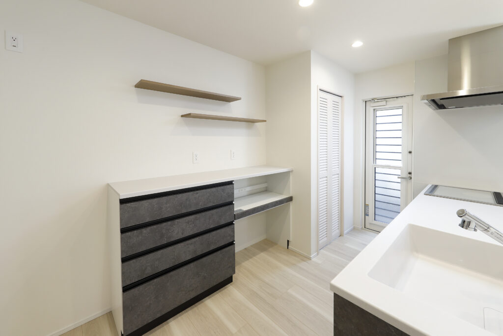 アイロンがけもできる造作テーブルと